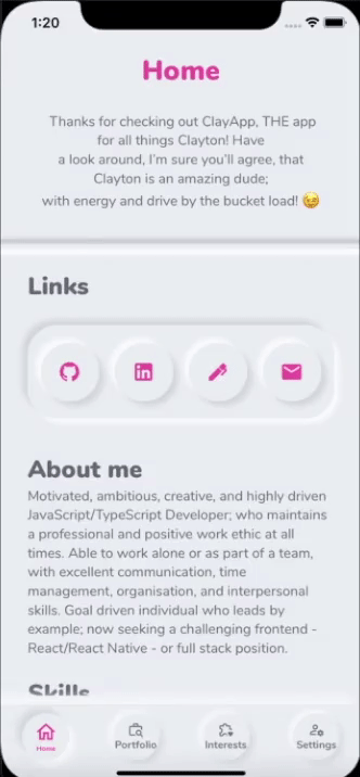 Personal portfolio app utilising commonly used frontend mobile technologies, e.g. React Navigation, RTK, & GraphQl.